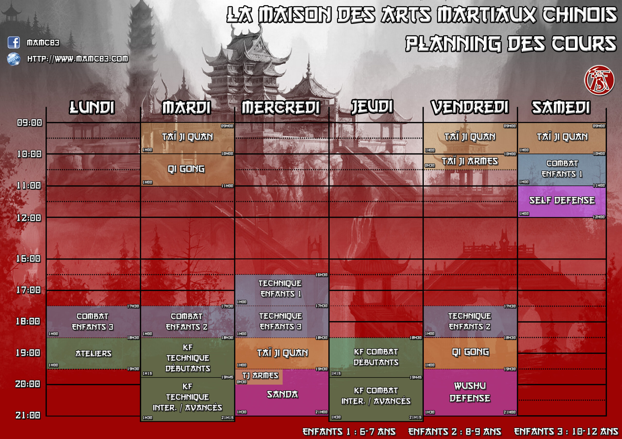 Planning de la Maison Chinoise des Arts Martiaux