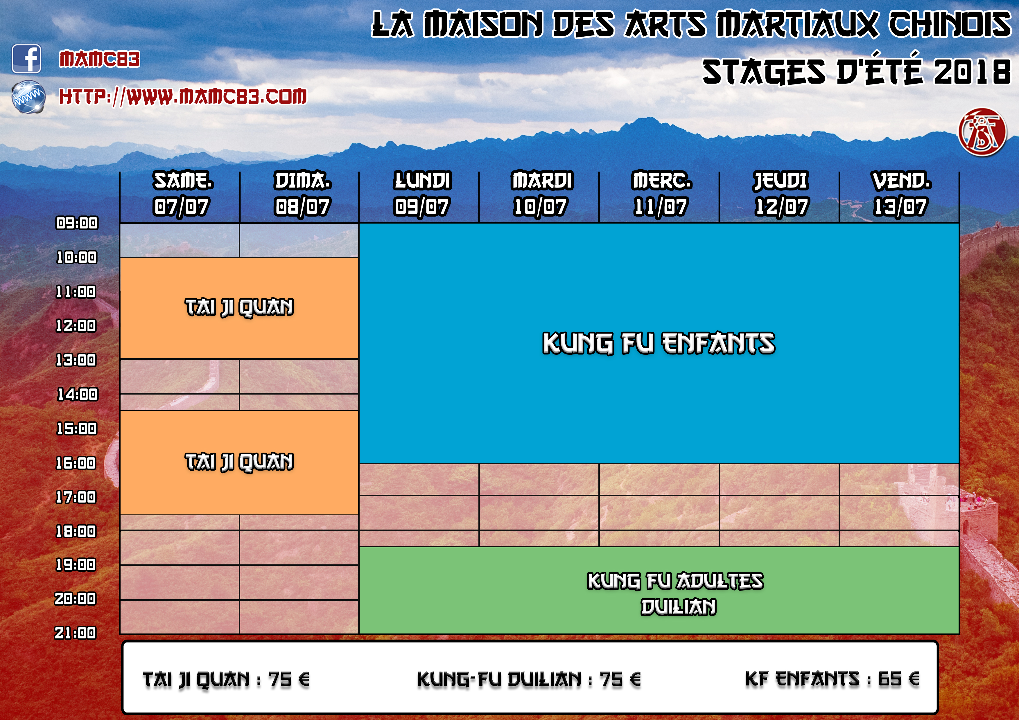 Ces stages, ouvert à tous, vous proposent de découvrir plusieurs disciplines du Wushu.